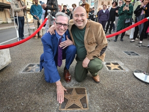 Anthony Chase and husband Javier Bustillos pose by Chase’s star in the Plaza of Stars.