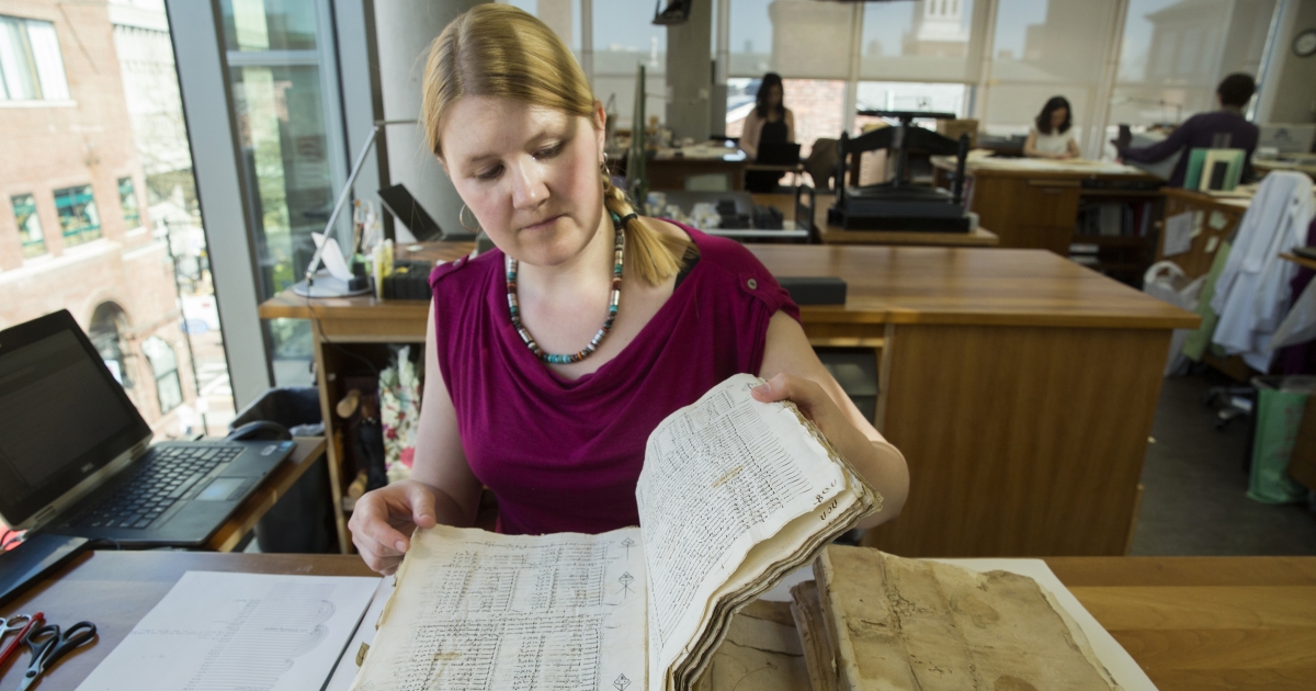 “The collections here are phenomenal, and I get to work on exquisite items,” she said. “It’s an ideal place for a book conservator who wants to do complex treatments on special collection materials.”